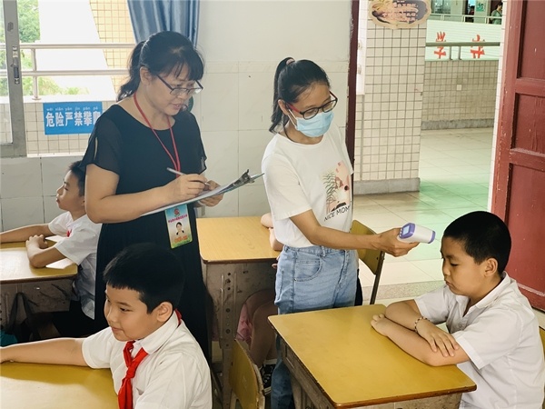 通往校園的河涌路上,孩子們按照學(xué)校制定的上學(xué)時(shí)間,實(shí)行錯(cuò)峰上學(xué)。越靠近北區(qū)小學(xué)的遮雨棚,越看清排隊(duì)的孩子們一臉認(rèn)真,聽從現(xiàn)場值日老師的引導(dǎo),快速進(jìn)入校園!今天是一、二和三年級(jí)返校復(fù)課的第二天,經(jīng)過昨天的校園生活,低年級(jí)孩子們已經(jīng)了解上學(xué)的秩序,學(xué)校的行政班子依然不懈怠地早早在校門口做好迎接全校學(xué)生上學(xué)的準(zhǔn)備,即使是已經(jīng)熟悉的測量體溫工作,值日老師們都一絲不茍地對(duì)待,面對(duì)全校學(xué)生錯(cuò)峰進(jìn)入校園,壓力不可小視,這種認(rèn)真對(duì)待的態(tài)度是北小一貫的常態(tài)!