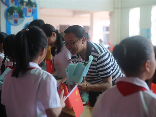 筑夢祖國,獻禮教師節(jié) “你給我一句話,就打開我一扇窗,你給我一個微笑我就渾身是力量……”,老師,從古至今都是一個受人稱贊的名詞,“春蠶到死絲方盡,蠟炬成灰淚始干”,老師,從古至今歌頌老師的詩句擲地有聲……在第35個教師節(jié)來臨之際,北區(qū)小學(xué)組織全校師生開展主題為“筑夢祖國,獻禮教師節(jié)”的教師節(jié)慶?;顒?。 9月10日的早晨,北小的校園是一片喜慶的海洋,經(jīng)過裝飾的大堂洋溢著濃濃的節(jié)日氣氛,全校師生手拿國旗揮舞著,北區(qū)小學(xué)慶祝教師節(jié)的活動好戲正在上演。活動由學(xué)校張雪老師和曾伯敖同學(xué)主持,劉云霄副校長代表學(xué)校向全體教師送上節(jié)日的問候和祝福;學(xué)生歌伴舞《老師》向老師表達敬意;師生朗誦《感念師恩》,師生間相互傾訴內(nèi)心獨白,老師們發(fā)出承諾,一日為師終身為師;主持人的采訪,學(xué)生向老師表達自己的敬意,“老師,謝謝您!”、“老師,我愛您!”、“我喜歡北區(qū)小學(xué)的老師”……一句句稚嫩的話語訴說著對老師的祝福;學(xué)校舞蹈隊舞蹈《阿藍與阿巫》,動感的音樂把會場的氣氛推上高潮;教師節(jié)日《旗袍秀》,平常雷厲風行的老師化身江南女子,婀娜多姿的身段贏得了學(xué)生的陣陣掌聲;學(xué)生代表手持獻花和小國旗,為全校老師送上獻花和節(jié)日的祝福,最后,全校師生一起唱響《我們都是追夢人》,校啦啦隊的隊員手持啦啦球從各個角落舞動起來,把活動氣氛再一次推上一個高潮。 老師,您是辛勤的園丁,盼望著鮮花滿園、桃李芬芳;老師,是美的耕耘者,是美的播種者,正是老師們用美的陽光普照、用美的雨露滋潤,才有綠草如茵、繁花似錦!在屬于教師的節(jié)日里,請收下學(xué)生的祝福和獻禮!