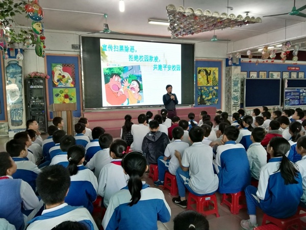 講座中,學(xué)校專門邀請了法制副校長凌勇警長,為五六年級師生作專題講座,凌警長結(jié)合違法犯罪案例,用通俗易懂的語言向?qū)W生闡述了什么是“黑惡勢力”以及黑惡勢力違法犯罪的種種表現(xiàn)、社會危害以及面對“黑惡勢力”如何運用法律進行自我保護等內(nèi)容。告誡全體同學(xué)務(wù)必謹慎交友,加強法律知識學(xué)習(xí),提高自我控制能力和辨別是非能力。最后,劉主任希望同學(xué)們從身邊做起,從小事做起,做文明的德星學(xué)子,積極參與到"掃黑除惡"行動中來,拒絕校園欺凌,營造良好氛圍,構(gòu)建平安和諧校園,為學(xué)生健康成長保駕護航。