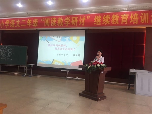 緊接著,由績東一小學魏文靜老師帶來專題講座——《依托統(tǒng)編版教材,提高學生的語言運用能力》。她帶著自己對于統(tǒng)編版教材的解讀,深入到教學的點點滴滴,分享自己根據(jù)教材特點改進教學的種種舉措,圖文并茂,有梯度,有深度。