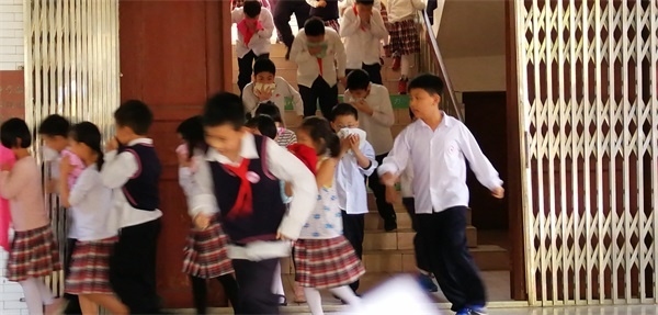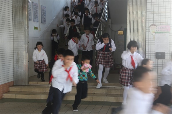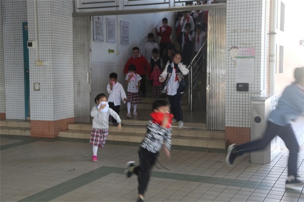 下午第二節(jié)課下課鈴聲剛響過不久,校園突然響起了警報(bào)鈴聲,各位老師迅速到達(dá)事先指定崗位,引導(dǎo)樓內(nèi)學(xué)生快速疏散,各班教師帶領(lǐng)學(xué)生捂住口鼻,彎腰撤離,各樓層導(dǎo)護(hù)教師在樓梯拐角處協(xié)助學(xué)生撤離,指導(dǎo)幫助學(xué)生做出正確逃生姿勢,沿著學(xué)校指定樓梯口逃生,有序地到達(dá)操場安全地帶。整個(gè)逃生過程中,學(xué)生基本做到下樓梯快速行走,先到先下,無強(qiáng)行沖、擠行為,動(dòng)作迅速,不慌亂。整個(gè)撤離時(shí)間在2分鐘之內(nèi)完成。