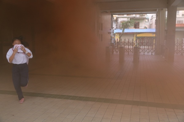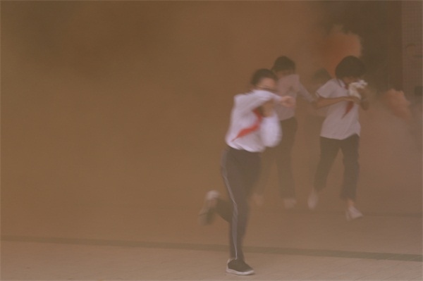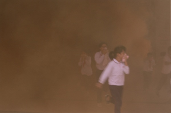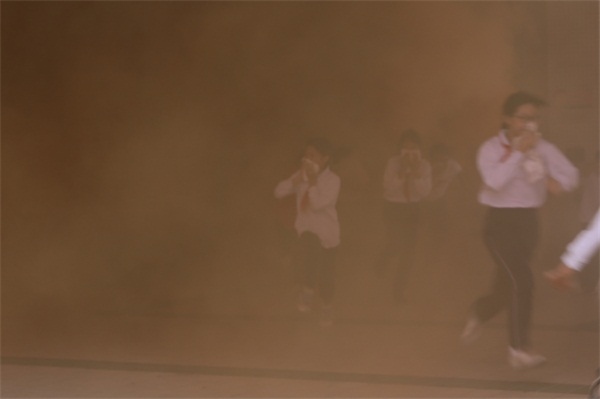 為保證活動(dòng)地順利進(jìn)行,學(xué)校提前告知孩子們當(dāng)天準(zhǔn)備好毛巾,但為了提高學(xué)生的應(yīng)急能力不告訴學(xué)生具體的演練時(shí)間。警報(bào)一鳴起,全體學(xué)生迅速用毛巾捂住口鼻,快速地按學(xué)校指定的疏散路線撤離教學(xué)樓,集中到運(yùn)動(dòng)場。為了讓師生真實(shí)體驗(yàn)此過程,本次還在各個(gè)逃生必經(jīng)之處點(diǎn)燃了煙霧彈,現(xiàn)場濃煙滾滾,效果逼真。隨后,吳主任點(diǎn)評(píng)了本次消防安全演練。吳主任向同學(xué)們講解了一些逃生知識(shí)要點(diǎn),特別是要用濕布捂住口鼻,有利防止被煙霧熏倒而導(dǎo)致喪失生命。