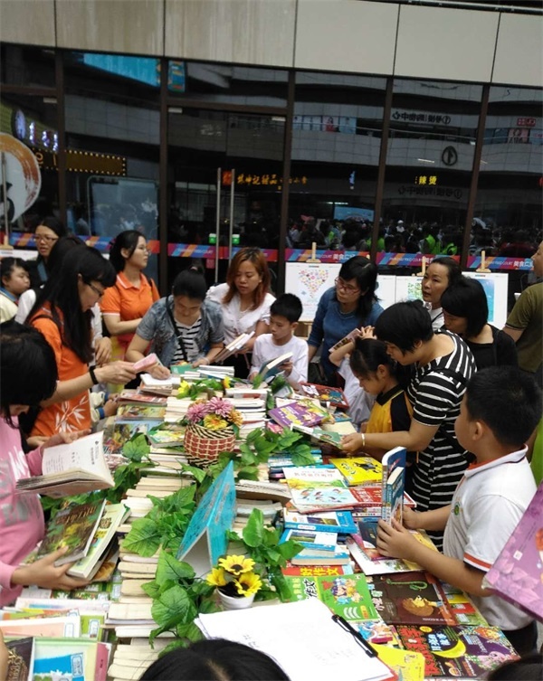 緊接著是各單位的曬書(shū)活動(dòng),各校各具特色的書(shū)攤書(shū)目琳瑯滿目,孩子們和家長(zhǎng)穿梭在各大攤位間去尋找自己喜歡的書(shū)籍,樂(lè)此不疲,享受著讀書(shū)的喜悅,體驗(yàn)著讀書(shū)的樂(lè)趣。他們以書(shū)會(huì)友,或換入,或換出,“忙”得不亦樂(lè)乎。書(shū)攤的攤主們和義工們更是樂(lè)開(kāi)了花。孩子們?cè)跁駮?shū)活動(dòng)中不僅交換了心愛(ài)的書(shū)籍,還提高了與人交往的能力。