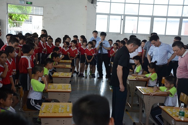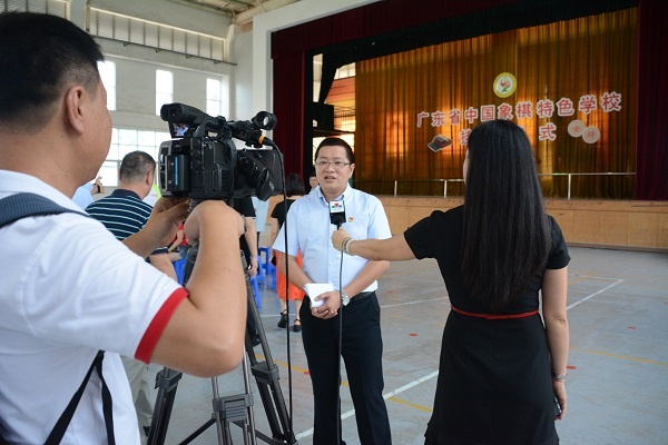 六月荷花香滿湖,紅衣綠扇映清波。2019年6月20日,在這艷陽(yáng)高照、蜂蝶帶香的時(shí)節(jié),小欖鎮(zhèn)績(jī)東二小學(xué)隆重舉辦廣東省象棋特色學(xué)校揭牌儀式,小欖鎮(zhèn)電視新聞臺(tái)前來(lái)拍攝現(xiàn)場(chǎng)。中山市象棋協(xié)會(huì)常務(wù)副會(huì)長(zhǎng)李銳泓先生、小欖鎮(zhèn)文體教育局體委主任黃應(yīng)幫先生、績(jī)東二社區(qū)黨委書(shū)記麥焯枝先生、小欖鎮(zhèn)象棋協(xié)會(huì)會(huì)長(zhǎng)、績(jī)東二社區(qū)黨委副書(shū)記兼居委會(huì)主任張全輝先生、熱心贊助人士中山市匯豐城置業(yè)有限公司蔡梓豪先生、中山市象棋協(xié)會(huì)秘書(shū)長(zhǎng)劉漢生先生、績(jī)東二社區(qū)黨委副書(shū)記李冰女士、小欖鎮(zhèn)象棋協(xié)會(huì)秘書(shū)長(zhǎng)黃鎮(zhèn)興先生、小欖鎮(zhèn)象棋協(xié)會(huì)的國(guó)家級(jí)象棋大師黃仕清先生、社區(qū)的兩委領(lǐng)導(dǎo)、小欖鎮(zhèn)11所兄弟學(xué)校的校長(zhǎng)、和三四年級(jí)全體師生參加了這隆重的活動(dòng)。