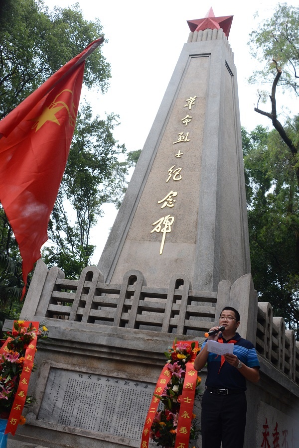 在活動(dòng)中,全體師生們莊嚴(yán)肅立在紀(jì)念碑前,注視著鮮紅的隊(duì)旗,用嘹亮而又堅(jiān)定的聲音齊唱著中華人民共和國國歌和少先隊(duì)隊(duì)歌《我們是共產(chǎn)主義接班人》。接著少先隊(duì)代表向烈士紀(jì)念碑敬獻(xiàn)了花籃,師生向烈士們莊嚴(yán)地三鞠躬表達(dá)了對(duì)先烈的深切哀悼和無盡的敬仰之情,緊接著少先隊(duì)大隊(duì)輔導(dǎo)員陳凱訊老師帶領(lǐng)同學(xué)們呼號(hào),呼吁學(xué)生為共產(chǎn)主義事業(yè)貢獻(xiàn)力量?;顒?dòng)最后,由李彥峰校長(zhǎng)講話,希望全體少先隊(duì)員牢記革命烈士的豐功偉績(jī),繼承革命烈士的遺志,從小樹立遠(yuǎn)大理想,好好學(xué)習(xí),天天向上,為了祖國更加強(qiáng)盛,家鄉(xiāng)更加繁榮而奮發(fā)努力。最后,全體師生繞紀(jì)念碑墓一周為烈士獻(xiàn)花?;顒?dòng)在莊嚴(yán)肅穆的氣氛中結(jié)束。