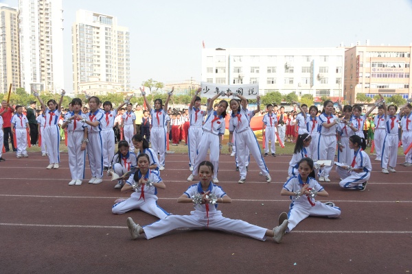 上午8點整,隨著歡快的彩旗隊指引,各具特色的班級方陣展示開始了。圍繞開幕式的主題“我和祖國共成長”各班排成整齊的方陣,步履矯健,所選的紅歌和所跳的紅舞均彰顯出班級特色和對繁榮祖國的歌頌。天真的孩子們手執(zhí)鮮艷的小國旗,如同手持一個個色彩斑斕的夢想;十幾位同學(xué)挑長龍而入,栩栩如生的長龍在他們手中,仿佛被注入了新的靈魂。盤旋著、飛舞,他們不斷變換隊形,如同蓄勢待發(fā)的巍巍蛟龍,彰顯出祖國臥虎藏龍、龍騰虎躍的豪邁氣勢!“咚咚咚”,伴隨著節(jié)奏感十足的鼓點,又一支雄赳赳氣昂昂的隊伍,向主席臺進(jìn)發(fā)了,代表著必勝的決心和雄壯的氣魄,如同華夏兒女的象征;還有一支隊伍,他們身著唐裝,用天真無邪的笑容演繹蓬勃生機(jī),更彰顯出對中華傳統(tǒng)文化的熱愛。