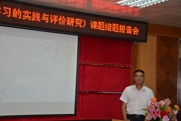 報(bào)告會(huì)的第一個(gè)環(huán)節(jié)是與會(huì)專家和領(lǐng)導(dǎo)審閱相關(guān)文字資料。緊接著,何校長(zhǎng)就《小學(xué)生語(yǔ)文展演學(xué)習(xí)的實(shí)踐與評(píng)價(jià)研究》課題作了結(jié)題報(bào)告。在報(bào)告中,他從課題研究?jī)r(jià)值、研究目標(biāo)和內(nèi)容、課題研究方法以及課題研究的成果與成效這四個(gè)方面對(duì)課題進(jìn)行了全面、細(xì)致的梳理、回顧、總結(jié)和反思。報(bào)告會(huì)的第三個(gè)環(huán)節(jié)是與會(huì)專家對(duì)課題提出指導(dǎo)建議。專家們對(duì)課題選題的意義、課題研究成員的研究熱情與辛勤付出以及豐碩的研究成果給予了充分的肯定,并從調(diào)查問(wèn)卷題目的設(shè)置、調(diào)查數(shù)據(jù)的科學(xué)與有效性等內(nèi)容對(duì)課題存在的問(wèn)題給予細(xì)致的指導(dǎo),并鼓勵(lì)在場(chǎng)所有的教師繼續(xù)以嚴(yán)謹(jǐn),認(rèn)真,科學(xué)的態(tài)度從事教學(xué)科研,令在場(chǎng)的老師獲益良多。最后,何校長(zhǎng)作表態(tài)性發(fā)言,感謝專家們的肯定,感謝市鎮(zhèn)對(duì)課題研究的大力支持,感謝課題組成員的辛勤付出,他還表示,盡管課題已經(jīng)結(jié)題,但是績(jī)西教師對(duì)于展演學(xué)習(xí)的研究還將繼續(xù)深入。