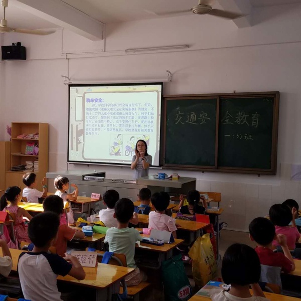 課堂上老師們提醒學(xué)生:要懂得珍惜生命,不在道路上玩耍,過馬路須要走人行橫道(斑馬線),遵守交通信號的指示,不要在車輛附近玩耍,駕駛室有很多盲區(qū),司機不一定能注意到。教育學(xué)生提高交通安全意識,讓他們從小養(yǎng)成遵紀守法的美德。同時希望通過小手拉大手的形式,讓孩子轉(zhuǎn)告父母——在放學(xué)接送孩子時,請自覺將車輛停在停車位上,不要擁擠在校門口及周邊路段,不要在學(xué)校門前路段隨意掉頭,以免造成交通擁堵。