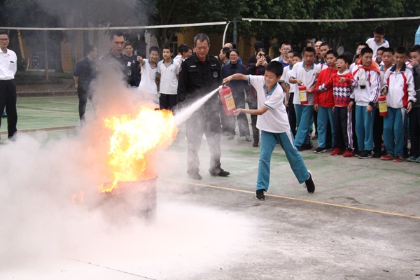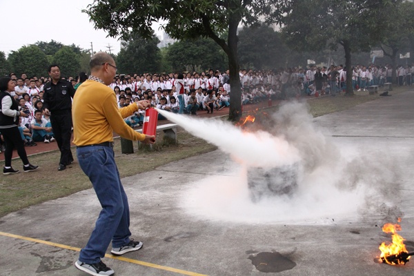 為了加強(qiáng)學(xué)校的安全工作,提高師生的安全防范意識,掌握避險技能,提高應(yīng)對突發(fā)事件能力,保障師生的生命安全,打造平安校園,3月26日,在第24個全國中小學(xué)生安全教育日到來之際,菊城中學(xué)聯(lián)合小欖保安服務(wù)公司和績西社區(qū)消防站共同舉行了一次火災(zāi)疏散逃生和滅火實(shí)操演練活動。鎮(zhèn)文體教育局鄧永飛副主任、小欖保安服務(wù)公司黃志東常務(wù)副總經(jīng)理、績西社區(qū)消防站黃健波站長等以及學(xué)校全體師生共1500多人參加了活動。