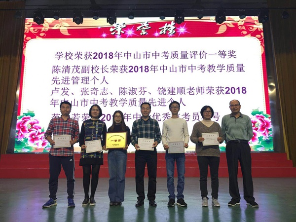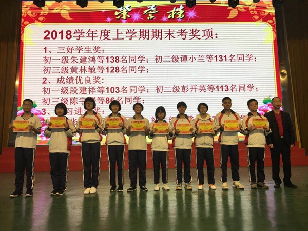 開學(xué)典禮由教學(xué)處黃明英副主任主持,她首先向全體師生報喜訊:學(xué)校榮獲2018年中山市中考質(zhì)量評價一等獎、2018年度鎮(zhèn)素質(zhì)教育目標(biāo)評估先進(jìn)單位。陳清茂副校長榮獲2018年中山市中考教學(xué)質(zhì)量先進(jìn)管理個人,盧發(fā)、張奇志、陳淑芬、饒建順老師榮獲2018年中山市中考教學(xué)質(zhì)量先進(jìn)個人,范小若榮獲2018年中考優(yōu)秀監(jiān)考員稱號。然后由陳清茂副校長宣讀2018學(xué)年度上學(xué)期期末考獎項(xiàng)和各級各類學(xué)生獲獎名單,并隆重頒獎。