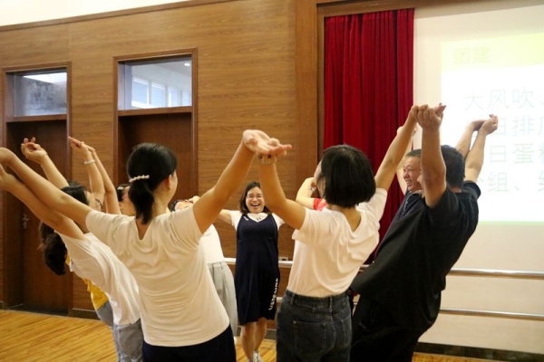 本次活動以“有你真好”為主題,通過組織“大風吹小風吹”、“生日蛋糕”、“為你打call”、“撲克排序”等環(huán)節(jié),幫助班主任了解在工作生活中需要增強團隊意識,互幫互助,面對壓力學會調節(jié)情緒放松身心。
