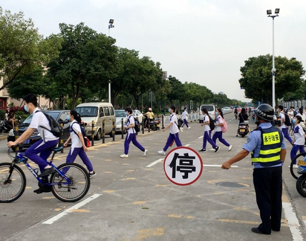 5月11日早上6:50分,永寧中學全體教育管理干部、值日老師、校醫(yī)和永寧衛(wèi)生院駐點醫(yī)生全部到崗,做好迎接第二批師生返校歸來。小欖鎮(zhèn)黨委劉世光委員、小欖鎮(zhèn)教育事務(wù)指導中心羅柏洪專干、永寧衛(wèi)生院黃映紅院長到現(xiàn)場指導。永寧派出所干警、永寧治保會治安員和學校保安員在現(xiàn)場維持秩序,全方位保障學校門口家長和師生有序、安全、有序地返學。