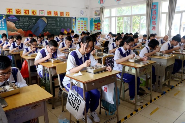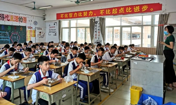 最后,全體班主任和學校管理干部分班級進教室,對學生們進行用餐流程和要求的實操培訓,用心守護,確保學生用餐安全。