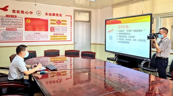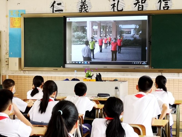 接著,陳清茂校長直播講授 《返校復學第一課》,帶領(lǐng)著全體師生在教室舉行升旗儀式,觀看《疫情里的中國精神》視頻,希望同學們時刻將家國情懷厚植于心,時刻將嚴格自律牢記于胸。隨后,楊青華副校長開展《歡迎來到心理課堂 》心理健康講座,教會學生如何巧妙的化解疫情期間親子之間的矛盾,用心引導學生從線上學習回到教室學習等心理情緒調(diào)節(jié)的方法和技巧。
