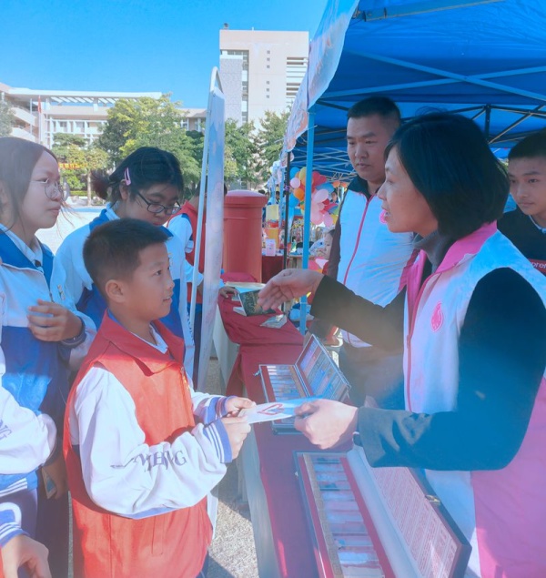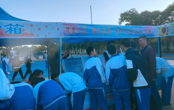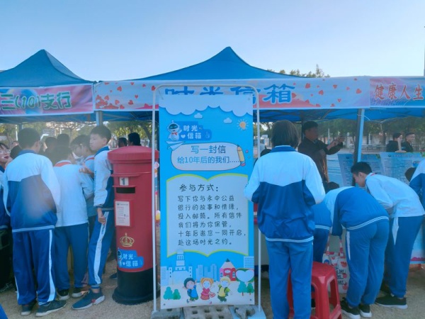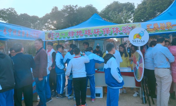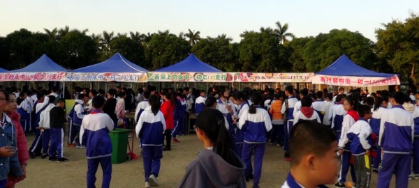 不過(guò),讓學(xué)生們最開(kāi)心的還是在運(yùn)動(dòng)場(chǎng)上舉行的第九屆永中公益銀行公益嘉年華活動(dòng)。演出一結(jié)束,同學(xué)們就興高采烈、爭(zhēng)先恐后的涌向?qū)W校運(yùn)動(dòng)場(chǎng)。在跑道周?chē)惲兄俺跻簧菩幸孜锝帧?、“初二舌尖上的永中”、“初三益智游戲一條街”、“家委會(huì)義賣(mài)區(qū)”、“時(shí)光信箱”、青年之家·學(xué)習(xí)社、永中公益銀行知識(shí)大轉(zhuǎn)盤(pán)、永寧社區(qū)禁毒公益互動(dòng)區(qū)、E2·綠地球環(huán)保體驗(yàn)區(qū)、English corner攤位、《獅樂(lè)萬(wàn)家》之”非遺~醒獅”公益體驗(yàn)區(qū)、鄰舍衣物回收攤位、衛(wèi)愛(ài)行動(dòng)(由小欖鎮(zhèn)民強(qiáng)“普洱”茶莊提供義賣(mài)物品,所有義賣(mài)善款全額資助永寧中學(xué)初二3班梁**同學(xué))等40多個(gè)攤位。同學(xué)們個(gè)個(gè)高舉著永中公益銀行存折,做起公益活動(dòng),玩起心愛(ài)的游戲、互換心愛(ài)物品、購(gòu)買(mǎi)心愛(ài)的義賣(mài)物品捐獻(xiàn)自己的愛(ài)心。體現(xiàn)了“善行換積分,積分換歡樂(lè)”的志愿精神。、