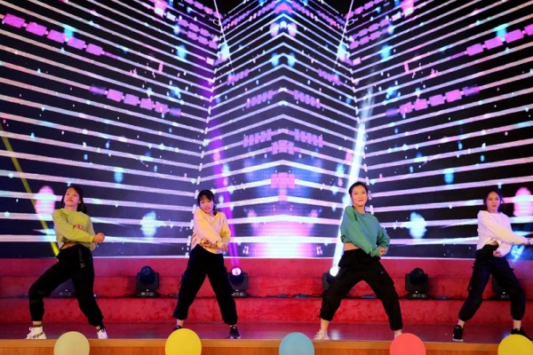 接下來(lái)進(jìn)行文藝科技表演。舞蹈社團(tuán)的《盛世中國(guó)》紅紅火火,歡天喜地;《永中武林風(fēng)》跆拳道、武術(shù)表演刀光劍影,龍騰虎躍;舞蹈社團(tuán)的拉丁舞《激情飛揚(yáng)》青春靚麗,活力四射;教師歌舞表演《共圓中國(guó)夢(mèng)》展望未來(lái),豪情滿懷;學(xué)校航模社團(tuán)展示《飛向藍(lán)天》,把整個(gè)文藝匯演推向高潮……
