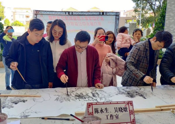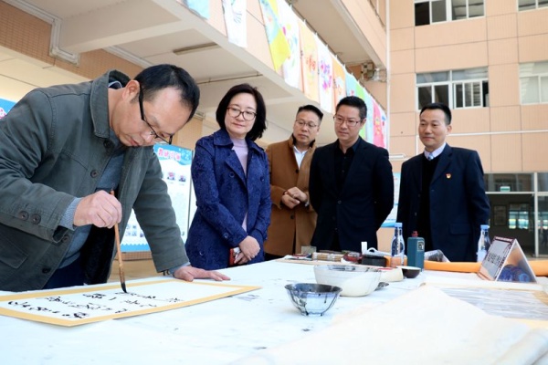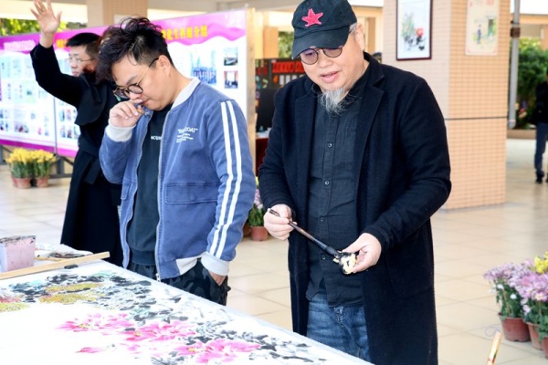 永寧中學(xué)人頭攢動(dòng),嘉賓云聚。小欖鎮(zhèn)黨委張曉陽(yáng)委員、文體教育局盧穎禧局長(zhǎng)等政府領(lǐng)導(dǎo)來(lái)了;永寧社區(qū)劉琴副書(shū)記等社區(qū)領(lǐng)導(dǎo)來(lái)了;小欖鎮(zhèn)華僑中學(xué)歐潤(rùn)添校長(zhǎng)等多個(gè)兄弟學(xué)校的校長(zhǎng)來(lái)了;李志平、陳永生、吳曉暾等書(shū)畫(huà)工作室的大師來(lái)了;永寧中學(xué)的退休老師回來(lái)了;校友、學(xué)生家長(zhǎng)也來(lái)了……真可謂高朋滿座!
