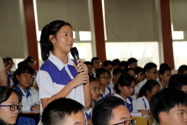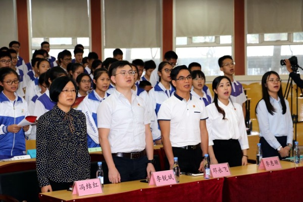 首先,在主持人引領(lǐng)下高唱國(guó)歌,在隆重的國(guó)歌聲中拉開了團(tuán)課的序幕。在團(tuán)課中,陳清茂校長(zhǎng)帶著大家從“輝煌的70年”、“青春建功新時(shí)代”、“共青團(tuán)的使命及性質(zhì)”、“新時(shí)代青年的新使命”四個(gè)方面進(jìn)行團(tuán)課授課,還有學(xué)生的現(xiàn)場(chǎng)互動(dòng)。在團(tuán)課中,陳校長(zhǎng)用生動(dòng)的歷史事例講述“五四”運(yùn)動(dòng)中的年輕人,為了國(guó)家的獨(dú)立、富強(qiáng)、民主、自由奉獻(xiàn)自己的生命,深深的震撼了在座的每一位師生。也讓師生們體悟到“五四”之后的一百年,在中國(guó)共產(chǎn)黨的領(lǐng)導(dǎo)下中國(guó)人民不斷進(jìn)步、富強(qiáng)的奮斗歷程,從而自然而然地萌發(fā)出“我要跟黨走”、“我是團(tuán)員”的自豪感,明確了作為新時(shí)代的新青年肩上的責(zé)任和使命。陳校長(zhǎng)的團(tuán)課站位高、立意新、視野廣、情懷深,能夠站在“為誰培養(yǎng)人”、“怎樣培養(yǎng)人”、“培養(yǎng)怎樣的人”的高度進(jìn)行設(shè)計(jì),有活動(dòng)、有思考、有視野、有情懷,在學(xué)生心靈深處埋下了一顆紅色的種子。