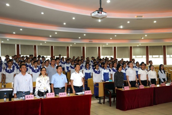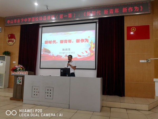 11月18日下午,為了增強(qiáng)團(tuán)員、青年的責(zé)任感和使命感,提高大家的思想覺悟,增強(qiáng)團(tuán)員、青年的政治意識(shí)、組織意識(shí)和時(shí)代意識(shí),永寧中學(xué)團(tuán)校在階梯教室開展主題為“新時(shí)代,新青年,新作為”精品團(tuán)課(第一期)。永寧中學(xué)團(tuán)校全體講師團(tuán)成員和初二、初三年級(jí)100多名團(tuán)員學(xué)生及入團(tuán)積極分子參加了學(xué)習(xí)?;顒?dòng)由團(tuán)委羅結(jié)晶老師主持,陳清茂校長(zhǎng)主講?;顒?dòng)還特邀了小欖鎮(zhèn)黨委副書記馮結(jié)紅女士、小欖鎮(zhèn)團(tuán)委書記李銳斌先生、小欖鎮(zhèn)教育線黨委副書記鄧永飛先生、小欖鎮(zhèn)西區(qū)社區(qū)團(tuán)委副書記李惠珊女士、小欖鎮(zhèn)兄弟學(xué)校的團(tuán)委書記、永寧中學(xué)全體行政領(lǐng)導(dǎo)也參加了本次的團(tuán)課活動(dòng)。
