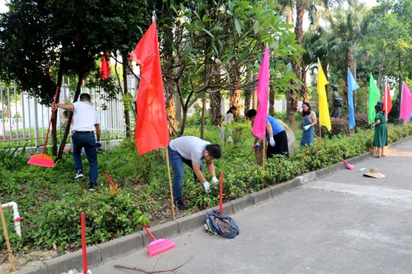 黨員們干勁十足,現(xiàn)場(chǎng)氣氛活躍。整個(gè)義務(wù)勞動(dòng)過(guò)程中,各小組的黨員們帶著清潔工具在各個(gè)分片的區(qū)域,清掃校園內(nèi)的枯枝落葉、雜草雜物、樹(shù)枝上掛著的墜物、裝運(yùn)垃圾等,發(fā)揮了不怕苦、不怕累、任勞任怨的精神,不僅充分彰顯了黨員的先鋒模范作用,而且也樹(shù)立起了“一名黨員、一面旗幟”的良好形象。