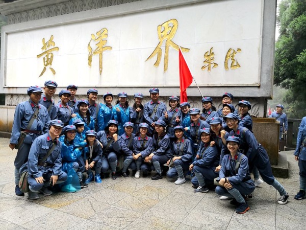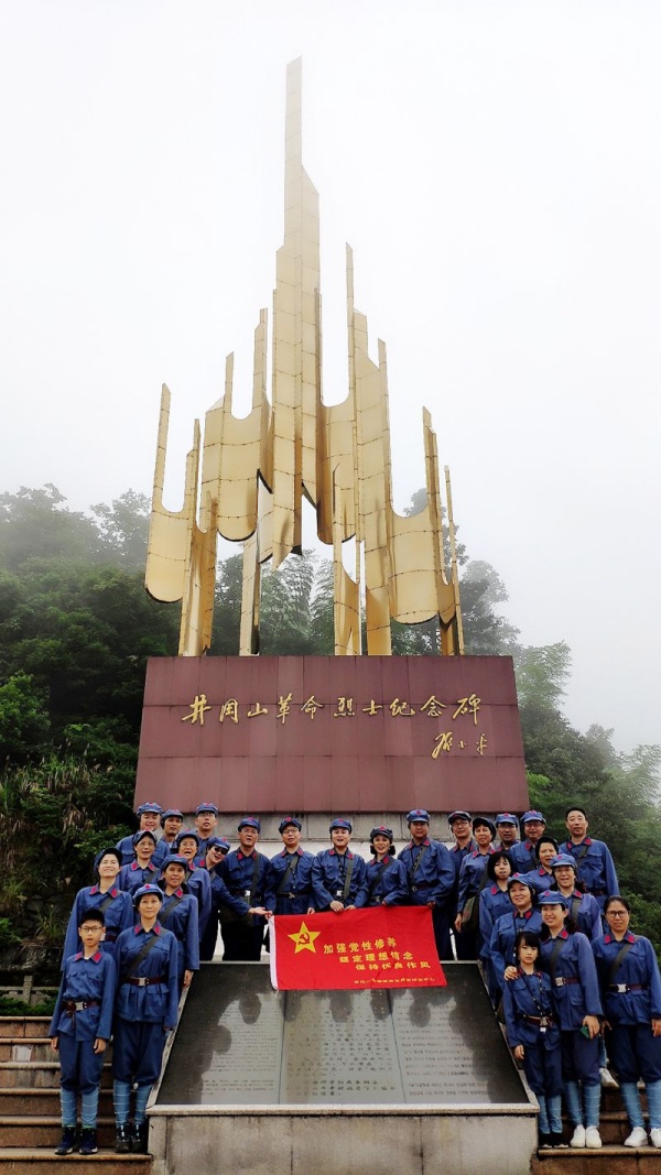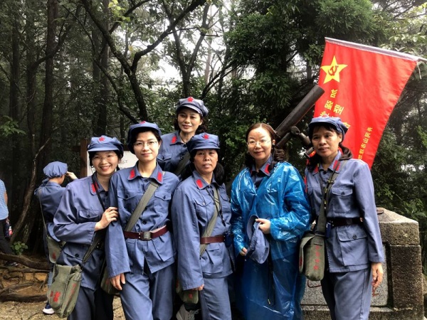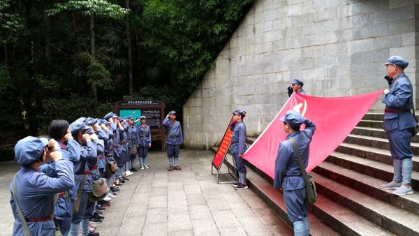 7月10日上午,學(xué)員們一大早就身著紅軍服,颯爽英姿,頗有當(dāng)年紅軍風(fēng)采,自豪感油然而生。尤其是來(lái)到井岡山紀(jì)念碑前合影,成為一道獨(dú)特的風(fēng)景。