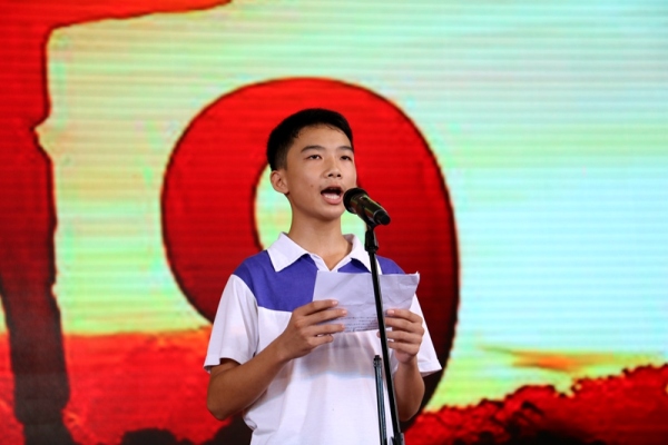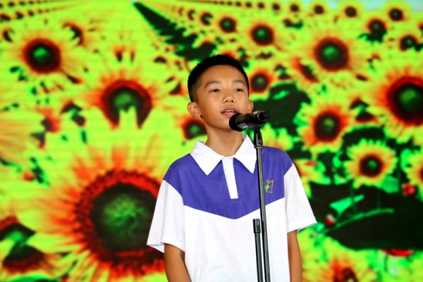 接著,初一(6)班徐煒燁代表全體同學向初三學生送祝福,祝福學長學姐讓七彩的夢在六月放飛,讓理想插上翅膀在藍天下翱翔。