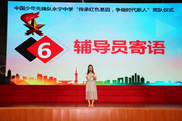 ——永寧中學(xué)舉辦初一年級(jí)少先隊(duì)員離隊(duì)儀式暨表彰活動(dòng)發(fā)布時(shí)間:2019-06-03 11:58 信息來源:本網(wǎng)站 瀏覽次數(shù):52