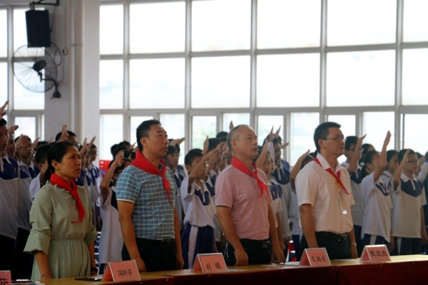 在“六一”兒童節(jié)到來之際,為了勉勵(lì)同學(xué)們珍惜少先隊(duì)的榮譽(yù),激勵(lì)他們保持和發(fā)揚(yáng)少先隊(duì)的優(yōu)良傳統(tǒng)和作風(fēng),爭取早日加入共青團(tuán)組織。5月31日,永寧中學(xué)團(tuán)委在校體育館舉辦“傳承紅色基因,爭做時(shí)代新人”------初一年級(jí)少先隊(duì)員離隊(duì)儀式暨表彰活動(dòng)。劉鵬校長、文炳發(fā)副校長、馮葉平主任、戴放良副主任、歐煥芬級(jí)長、團(tuán)委委員羅結(jié)晶、鐘燕老師和初一年級(jí)全體師生參加活動(dòng)。