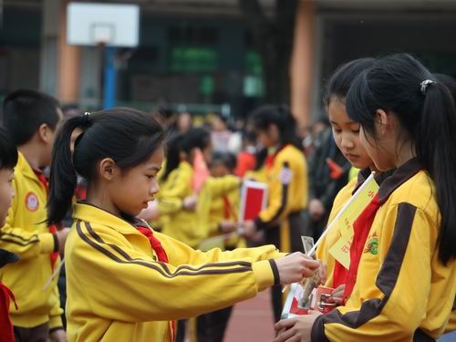 在升旗儀式上,五(1)中隊(duì)的旗手們從不同角度介紹了慈善萬(wàn)人行活動(dòng)。彭磊老師作了主題演講。接著,學(xué)校德育處行政做了動(dòng)員講話,充分介紹了今年中山市慈善萬(wàn)人行活動(dòng)。隨著公益主題曲《愛(ài)傳遞》等歌聲的響起,捐款開始了。少先隊(duì)員們揮舞著慈善愛(ài)心旗,操場(chǎng)上成了旗幟的海洋。