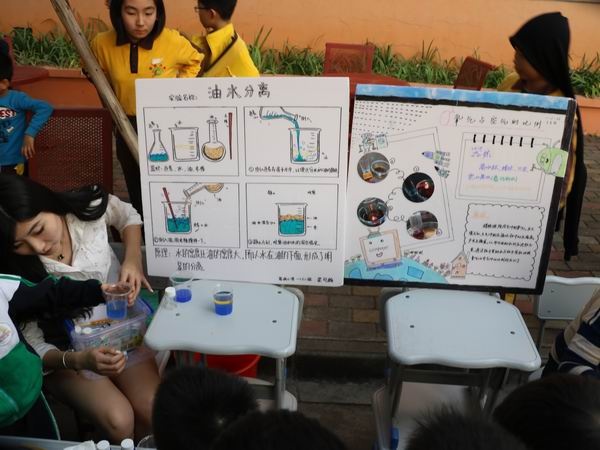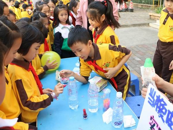 在閉幕式結(jié)束后,是全校師生參與的科技游園活動,包括了60多個新穎有趣的科學(xué)互動項目、優(yōu)秀科技小制作、優(yōu)秀科幻畫作品與優(yōu)秀金點子的展覽。在游園活動中,同學(xué)們一起開動聰慧的大腦、運用靈巧的雙手,在自己喜愛的各項活動中探索科學(xué)的奧秘,在心里播下科學(xué)的種子。
