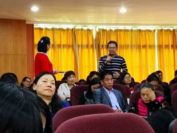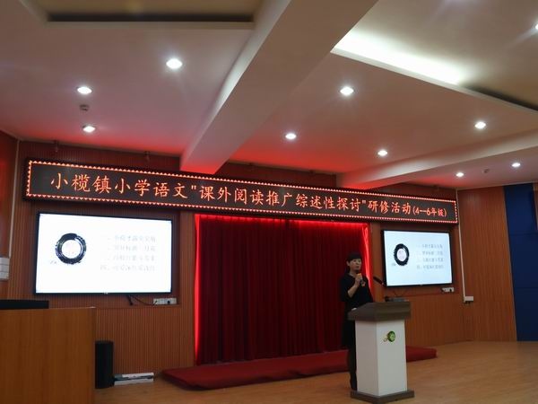 第三個環(huán)節(jié)是由小欖鎮(zhèn)中心小學楊廣平老師作題為《映日荷花別樣紅》的閱讀講座。楊老師從“起始階段”、“逐漸發(fā)展”、“深層推進”、“全面開花”四方面回顧小欖鎮(zhèn)“閱讀推廣”工作歷程,從營造閱讀環(huán)境、閱讀時間到閱讀方法的指導以及閱讀活動的開展進行詳細解說,根據(jù)六年級的特點介紹“主輔兩線閱讀”策略。報告會內(nèi)容豐富,精彩紛呈,讓在座的老師受益匪淺。