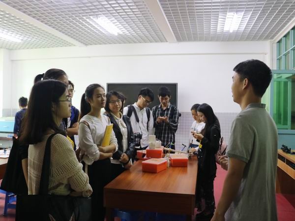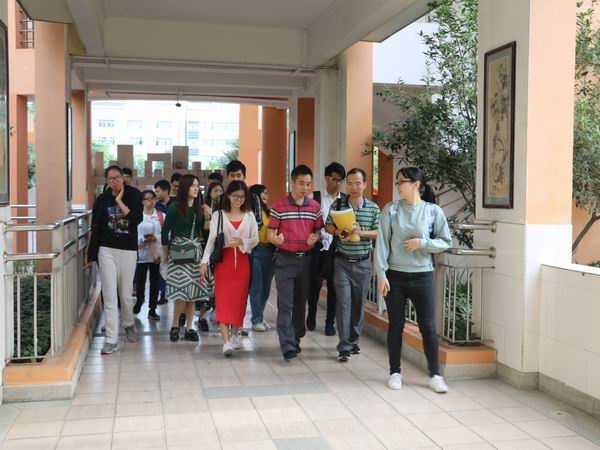 16日上午,教師進(jìn)修學(xué)院周朝華老師帶領(lǐng)中山市小學(xué)科學(xué)新教師們抵達(dá)中山市菊城小學(xué)。首先在陳新華主任的引導(dǎo)下參觀了科教氛圍濃厚的校園。菊城小學(xué)簡單樸實卻能很好契合科技教育及科學(xué)校園的科教功能室場和便于開展科教活動的校園環(huán)境讓新入職的科學(xué)教師們羨慕不已。