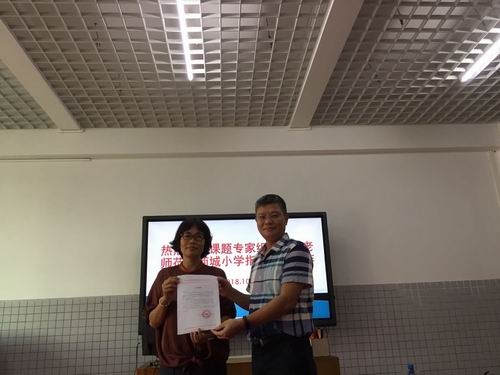 2018年10月9日在菊城小學(xué)科研中心的組織下,特別邀請(qǐng)了中山市教育和體育局陳春艷主任、馮玉生部長(zhǎng)、梁雪菊老師、張?zhí)﹦偫蠋?,中山市小學(xué)英語(yǔ)中心組藍(lán)韶英老師,小欖鎮(zhèn)教育事務(wù)中心周小燕校長(zhǎng)到校進(jìn)行課題開(kāi)題報(bào)告的指導(dǎo)。