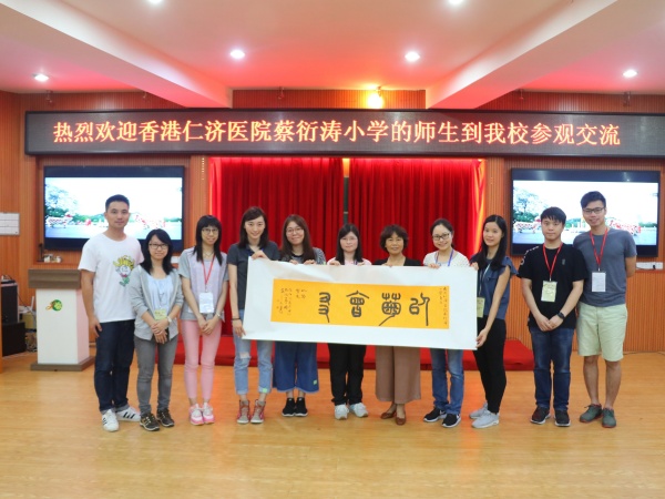 陳校長代表學(xué)校將一幅“以菊會友”的書法作品,贈送給香港仁濟(jì)醫(yī)院蔡衍濤小學(xué)的老師們。兩校的學(xué)生代表也交換了小禮物。菊城小學(xué)希望能夠和他們保持聯(lián)系,將來有更多機(jī)會相互交流學(xué)習(xí)。