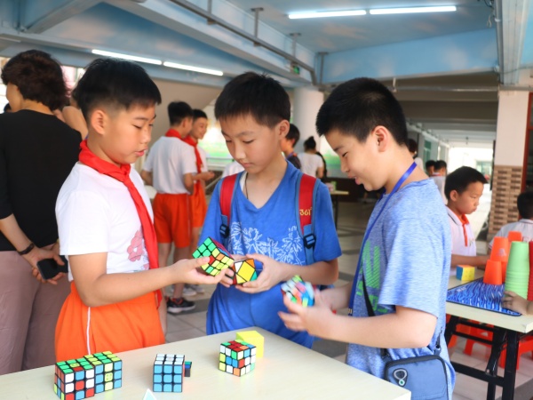 接著,香港的小朋友們分成8個小隊,在菊小隊員的陪伴下,來到各個紅領(lǐng)巾社團(tuán)進(jìn)行互動體驗。在攀巖社團(tuán),大家大膽挑戰(zhàn),相互鼓勵;在益智游戲社團(tuán),菊小隊員手把手教香港朋友,克服一個個難關(guān);在航模社團(tuán),大家一起體驗“一飛沖天”的豪情;在書法社團(tuán)和陶藝社團(tuán),大家為中華傳統(tǒng)文化深深著迷……體驗過程中,大家有說有笑,不斷增進(jìn)信任和友誼。