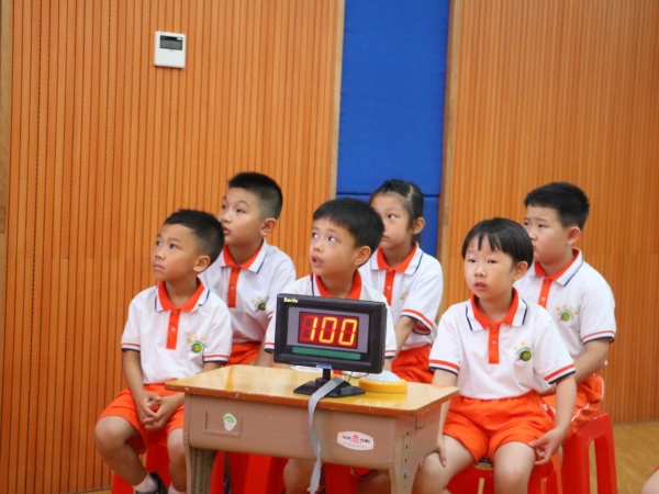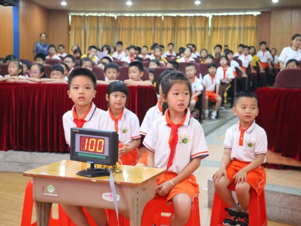 本次入隊培訓(xùn)以知識競賽的形式展開,由大隊副輔導(dǎo)員王甜老師和關(guān)永釧老師組織。競賽開始前,王甜老師帶領(lǐng)所有隊員和同學(xué)們邊唱隊歌邊做手語操。接著,各中隊少先隊員代表和預(yù)備隊員組成答題小隊。本次競賽分為必答題、搶答題和實操比賽題三個環(huán)節(jié)。必答題要求各隊先選擇題號,每隊必須答3題,答對加10分答錯或不答不扣分,觀眾可以補答。在第一輪的比賽中所有的隊伍抽中的題目全都答對,這也體現(xiàn)了隊員們對少先隊知識都比較了解。最激動人心的是搶答題環(huán)節(jié),這需要隊員們眼疾手快,通過這一環(huán)節(jié)的比拼,每一個小隊的分?jǐn)?shù)也拉開了差距。實操項目,要求參賽隊員在規(guī)定時間內(nèi)自己系好紅領(lǐng)巾,關(guān)永釧老師面對所有隊員和預(yù)備隊員們當(dāng)場演示正確系紅領(lǐng)巾的方法和敬標(biāo)準(zhǔn)隊禮的姿勢。在整個活動中各中隊隊員們和預(yù)備隊員們參與的積極性非常高。