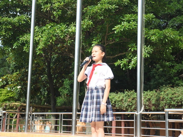 首先由四(2)中隊的升旗手圍繞“預防校園欺凌,營造幸福校園”的主題進行發(fā)言。他們號召大家“勿以善小而不為,勿以惡小而為之?!?/p>