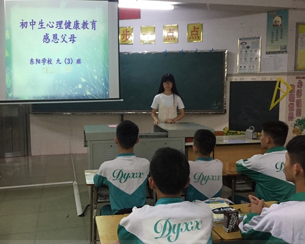 本次心理健康教育獲得不僅讓同學們對心理健康教育的重要性加深了認知,更彰顯了東陽學校對學生心理健康的教育工作的重視,讓學校日后的心理健康教育工作更為有序的進展,為同學們在校園生活中能夠健康成長做了堅實的鋪墊,希望通過本次教育,同學們能夠學會自我調控自身心理,做一個擁有健康身心的東陽學子,為父母分憂,將來為祖國奉獻自己的力量。