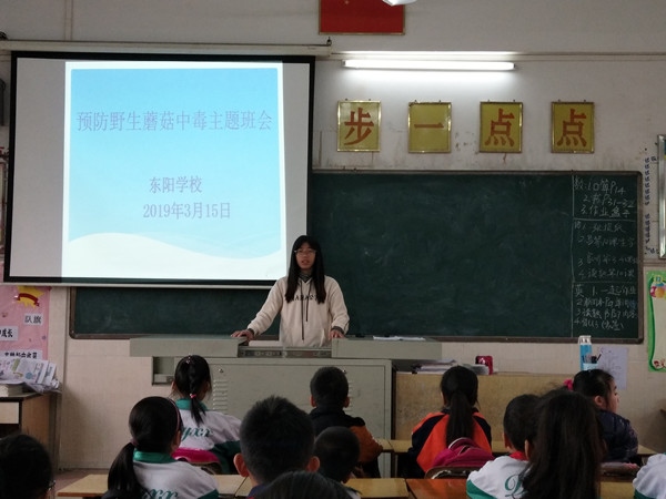 隨著雨季來臨,進入野生菌生長的旺長期,同時是食用野生毒菌中毒的高發(fā)季節(jié)。為有效預(yù)防野生菌中毒事件的發(fā)生,保障東陽學(xué)校校師生身體健康和生命安全,3月15日上午,學(xué)校安全處組織全校師生在各自班級進行《預(yù)防野生蘑菇中毒》主題班會。