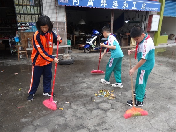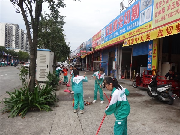 經(jīng)過(guò)1個(gè)多小時(shí)的打掃,街道顯得干凈、更加美觀。師生們看到通過(guò)自己的辛勤勞動(dòng)而變得整潔美觀的街道,臉上都露出了燦爛的笑容。