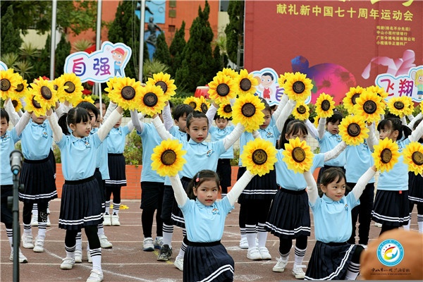 秋暮冬初,菊香飄溢。在這美好的季節(jié)里,廣源學(xué)校的校園里生機(jī)昂然,激情涌動(dòng),熱情似火?!拔液臀业淖鎳?一刻也不能分割,無論我走到哪里,都流出一首贊歌……”12月5日下午,以“運(yùn)動(dòng)健體魄 共筑強(qiáng)國夢(mèng) —— 獻(xiàn)禮新中國70周年”為主題的校運(yùn)會(huì)在田徑場勝利開幕。
