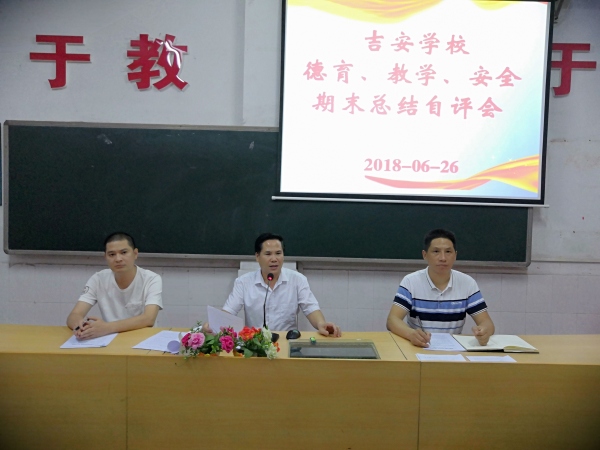 時(shí)光荏苒,如白駒過隙。吉安學(xué)校2017-2018學(xué)年度第二學(xué)期的各項(xiàng)工作和任務(wù),在全體教職工的辛勤耕耘、共同努力下即將完成了,為了總結(jié)這一學(xué)期工作的得失,譜寫新的前進(jìn)方向,吉安學(xué)校全體教師在韋志海校長(zhǎng)的組織領(lǐng)導(dǎo)下,于6月26日晚7點(diǎn)整,齊聚在多媒體教室召開了期末德育、教學(xué)、安全總結(jié)自評(píng)會(huì)。