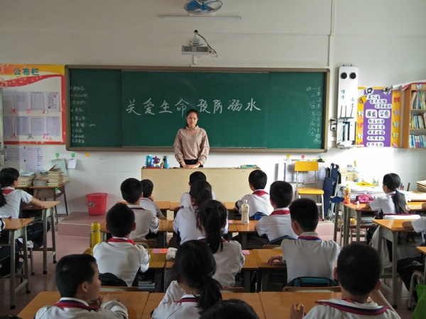 各班的班會課的形式多種多樣,有的班級是在觀看有關(guān)防溺水教育短片,有的班級則是在聽班主任講解防溺水知識,還有些班級選學(xué)生代表發(fā)言自己所了解的防溺水知識。無論是哪一種方式,都離不開班會課的教育目的和教育意義。本次班會課為三個(gè)板塊,第一個(gè)板塊是感悟生命,通過感悟生命,他們懂得生命的脆弱、可貴和無價(jià);第二個(gè)板塊是不讓悲劇重演,這個(gè)板塊中他們了解了溺水的原因以及溺水如何自救,遇到溺水者如何救護(hù)的相關(guān)知識;第三個(gè)板塊是親身體驗(yàn),通過他們親身扮演溺水者和救護(hù)者,進(jìn)一步增強(qiáng)了他們防溺水安全實(shí)踐能力。整個(gè)班會課氣氛熱烈而又不失嚴(yán)肅。