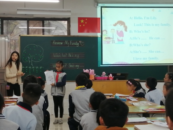 第3團隊的李珊珊老師充分發(fā)揮發(fā)揮肢體語言的魅力,在短短的一堂課中設置了有趣的游戲,來練習學生的聽說讀寫能力,游戲環(huán)環(huán)相扣,讓學生在玩中學,學中玩,學生在愉悅的課堂氛圍中完成本節(jié)課目標。
