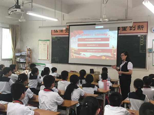 澆花澆根,育人育心。小學(xué)階段是最好的愛國教育陣地,為了更好的將愛國主義扎根到全體同學(xué)心底,古鎮(zhèn)新徽學(xué)校成婷校長利用思政課進(jìn)課堂的契機(jī),走進(jìn)各班級的主題班隊(duì)課,為全體同學(xué)帶來了一堂堂精彩的思政課。成婷校長在課前準(zhǔn)備了精美的課件,精心備課,以“我愛你中國”為主題,從“中華民族的愛國主義傳統(tǒng)”、“新時期的愛國主義”、“做忠誠的愛國主義中小學(xué)生”等多個方面,在思政課堂上通過不同形式對學(xué)生進(jìn)行思政教育和德育方面的滲透,讓老師和學(xué)生都能從中有收獲,學(xué)生在受到德育滲透的同時大大拓展了知識面,教師也進(jìn)一步豐盈了知識儲備,特別是要增強(qiáng)學(xué)生對偉大祖國和中華文化的認(rèn)同感,真正激發(fā)學(xué)生的愛國熱情,為黨和國家培育更多合格的建設(shè)者和接班人。