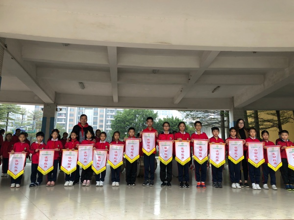 最后由蘇建強(qiáng)副校長、王紅霞副校長給各中隊(duì)頒發(fā)了本周流動紅旗!