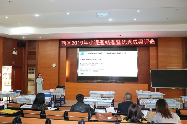 為提高課堂效率,更好地落實(shí)西區(qū)名教師培養(yǎng)計(jì)劃,滿足教師個(gè)性化的教育科研實(shí)踐需求,根據(jù)西區(qū)小課題研究制度,2019年12月3日下午西區(qū)2019年小課題結(jié)題暨優(yōu)秀成果評選活動在西區(qū)中心小學(xué)開展。本次活動由西區(qū)教育事務(wù)指導(dǎo)中心劉海英副主任,進(jìn)修學(xué)院何取林老師、古林松老師等12位專家組成的評審組,對2019年初通過立項(xiàng)的39項(xiàng)小課題進(jìn)行結(jié)題評審,小課題組成員全程參與。