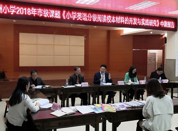 2019年12月30日,煙洲小學(xué)英語課題組在功能室舉行2018年市級(jí)立項(xiàng)課題《小學(xué)英語分級(jí)閱讀校本材料的開發(fā)與實(shí)踐研究》中期檢查匯報(bào)活動(dòng)。中山市教育教學(xué)研究室英語教研員張?zhí)﹦偫蠋?,中山市教育教學(xué)研究室《中山教育研究》雜志執(zhí)行主編方鐵民老師,西區(qū)教育事務(wù)指導(dǎo)中心英語專干姚佳老師,西區(qū)煙洲小學(xué)黃文華校長(zhǎng)、楊志堅(jiān)副校長(zhǎng)、教務(wù)處黃石生副主任以及課題組全體成員出席了本次中期檢查匯報(bào)會(huì),報(bào)告會(huì)由課題組成員黃偉純老師主持。