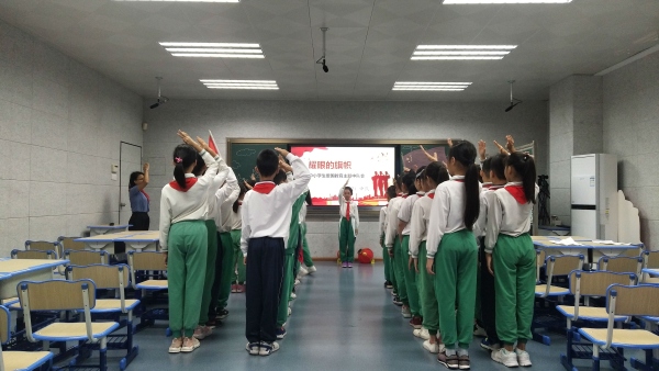 二(3)中隊的隊員們別出心裁,以舞蹈,畫畫和歌唱等多種形式表達(dá)他們對祖國的熱愛之情,雖然隊員們年紀(jì)小,但在整個活動過程中隊員們精神抖擻,活潑又有序充分展示了隊員們朝氣蓬勃的精神面貌。而四(2)中隊則充分發(fā)揮隊員的自主策劃能力,中隊長帶領(lǐng)小隊員在輔導(dǎo)員的指導(dǎo)下設(shè)計整個活動流程,隊員們各自圍繞主題,選擇角度,搜集資料為此次活動作準(zhǔn)備?;顒訌摹爸t旗”到“愛紅旗”“頌紅旗”再到“護(hù)紅旗”層層遞進(jìn),將“熱愛五星紅旗”“熱愛祖國”的種子播撒在每一位隊員心中,讓每一位隊員在參與這次活動之后,從內(nèi)心深處去愛國,用實(shí)際行動去愛國。