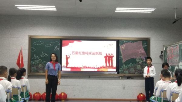 各中隊圍繞愛國主題選擇主題班會或中隊會的形式開展活動。每一個中隊的活動都精彩紛呈,可圈可點(diǎn)。其中二(3)中隊的《我給祖國慶生日》和四(2)中隊的《耀眼的旗幟》主題中隊會最為精彩。